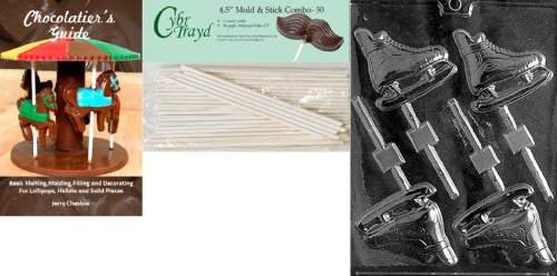 Cybrtrayd 'Ice Skates Lolly' Sports Chocolate Candy Mold with 50 4.5-Inch Lollipop Sticks and Chocolatier's Guide