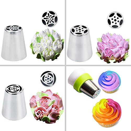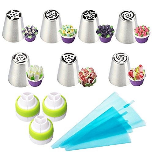 - EASY TO USE: This Russian piping tips 13-pcs set include everything you need, needn't to buy other things, you will make a pastries. And it takes only one step to make a beautiful flower, just squeeze! Even if you are a beginner, you can also make a beautiful and delicious cake like a professional (Splice tri-color couplers need 1 and 1, 2 and 2, 3 and 3. If not, the couplers can't hold together).