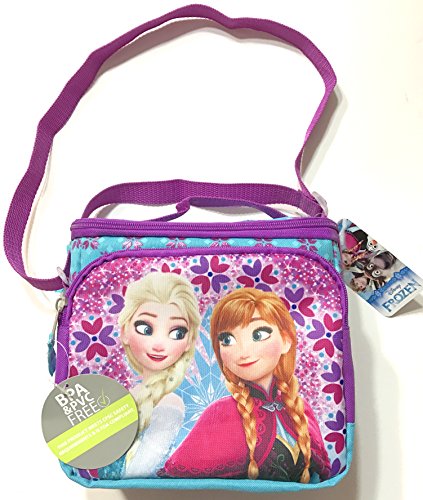Disney Frozen Elsa and Anna BPA & PVC Free Dual Zippered Insulated Padded Compartments with Carrying Handle and Adjustable Strap to Carry Over Shoulder or Cross Body Measures 9 W x 8H x 4.5 D
