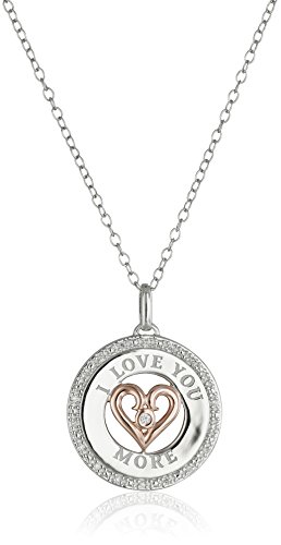 Link-chain necklace featuring round pendant featuring diamond-studded edging and rose gold heart and round-cut diamond at center