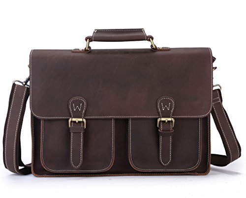 -. Feature : High Quality Crazy Horse Leather(Cowhide) / Size: Width:15",Tall(Height):10.6",Thick:3.5"(38cm*27cm*9cm) / Fully padded, adjustable shoulder straps / 1 roomy interior main pockets, which can holds an 15"laptop,iPad,iphone,wallet,umbrella and other small things / Folio Belt closure,top handle and Adjustable shoudler strap The bag is perfect for Dating,Working Place,Shopping,Traveling, Schooling and everyday use!