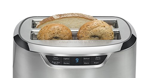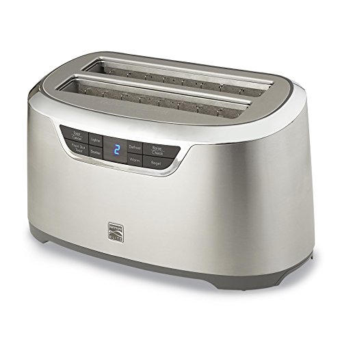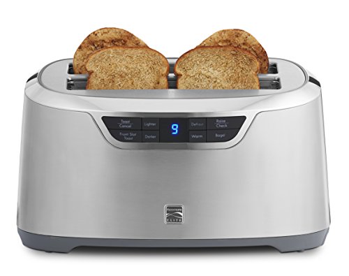 Designed with extra-wide slots, this four-slice auto-lift long slot toaster from Kenmore Elite fits everything from bagels to baguettes. The Stainless Steel surface looks sleek and is easy to clean, while the LED display is simple to read. Featuring a variety of smart settings, wide range of toast settings, countdown timer and handy retractable cord, this appliance is a kitchen all-star.Feature