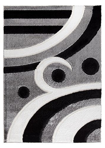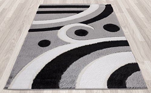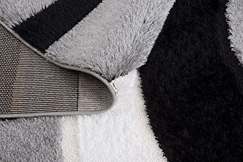 - Title : Casa Regina Shaggy Collection Grey and Black Contemporary Abstract Design (5'3"x7'3") Shag Area Rug