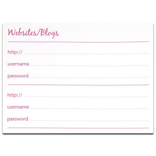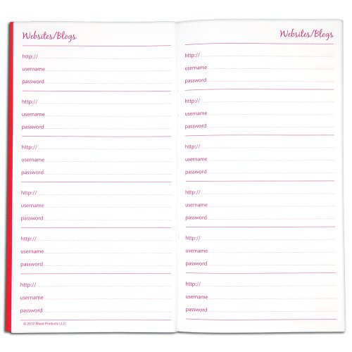 -. Feature : There's nothing more frustrating than forgetting your username and password / Flip open this portable book for instant access to both / 64-page booklet has 3.5 x 6.5 inch sheets / Store more than 370 passwords to websites and blogs / Stiff art card cover with bungee cord closure
