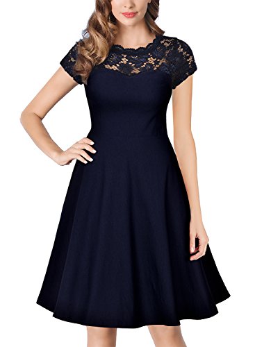 Title : Miusol Women's Casual Floral Lace Short Sleeve 1950'S Vintage Swing Dress