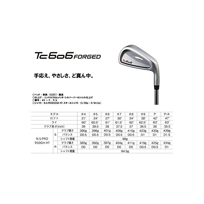 원본상품명: FOURTEEN(フォティン) TC606 FORGED アイアン 品 PA NS950GH HT シャフト TC-606FG 2015 スチル フレックス:R ハンド:right ロフト角: