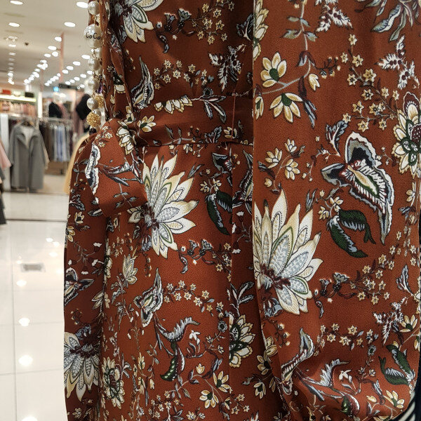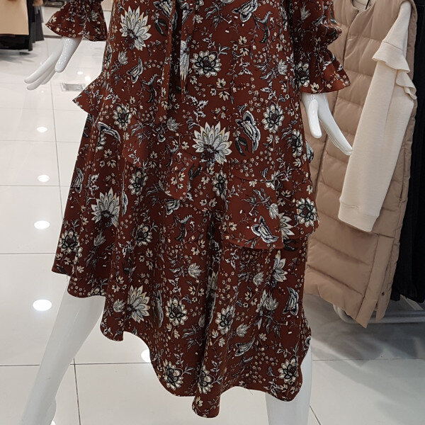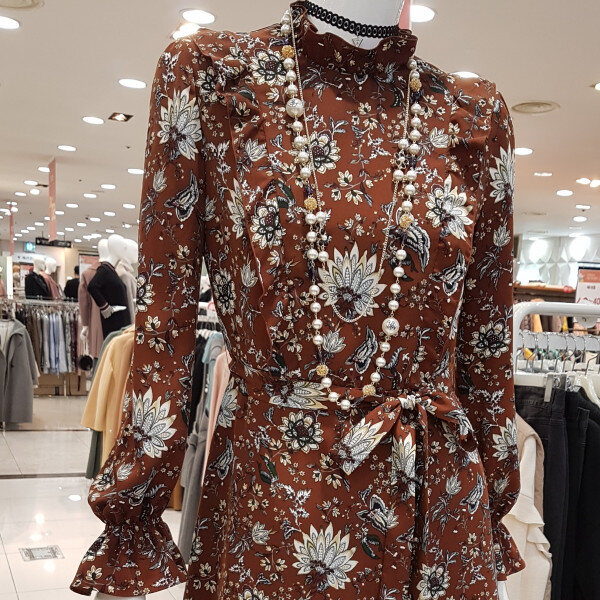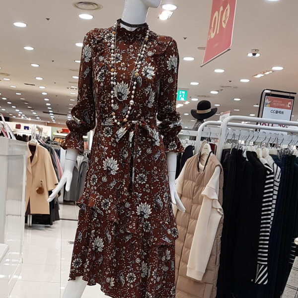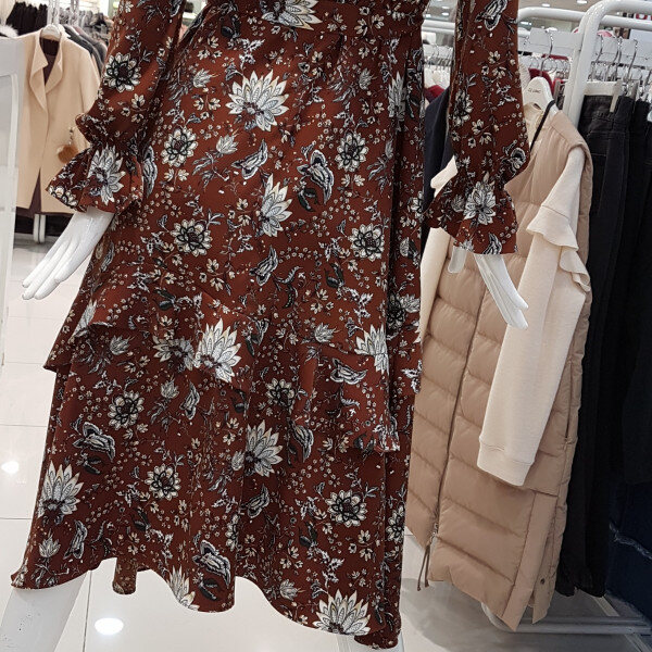 브라운컬러에 플라워프린트가 멋쪄용롱한기장에 밑단 언밸기장은 ㅎㅎ제가 완젼 날씬하고 롱하답니당두께감있는 공단느낌에 활용 좋으셔용롱롱하니 분위기있는 요아이 강추^^