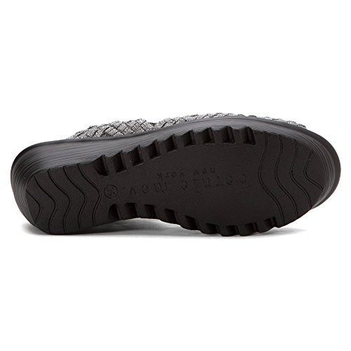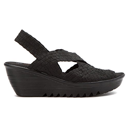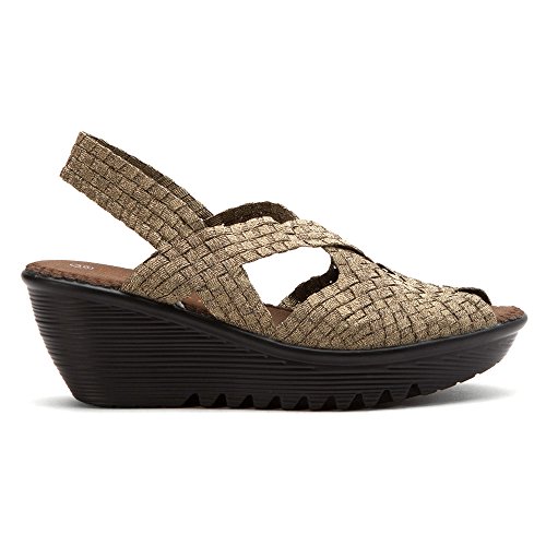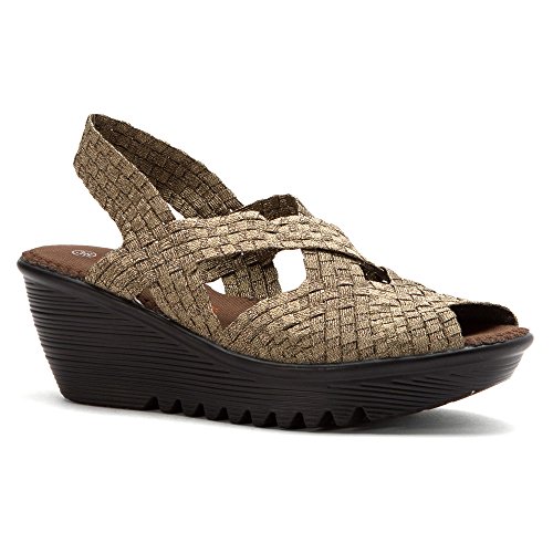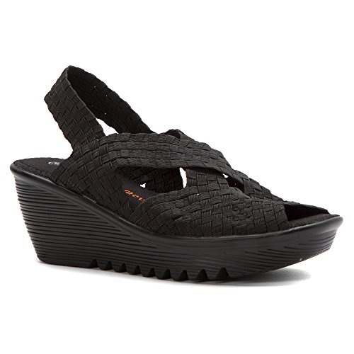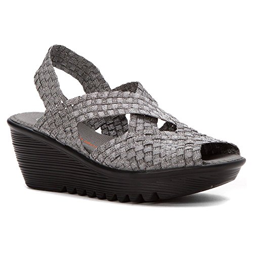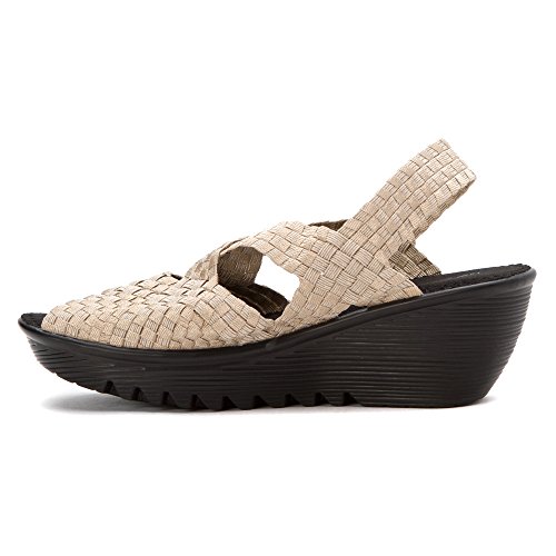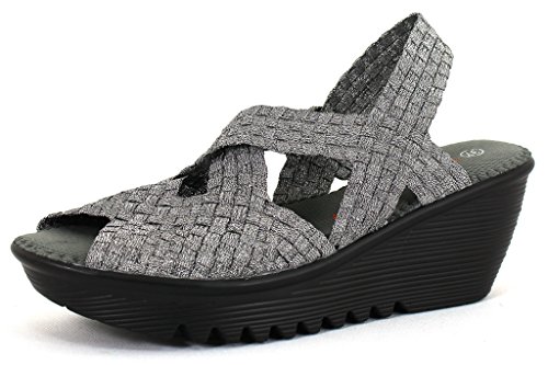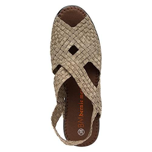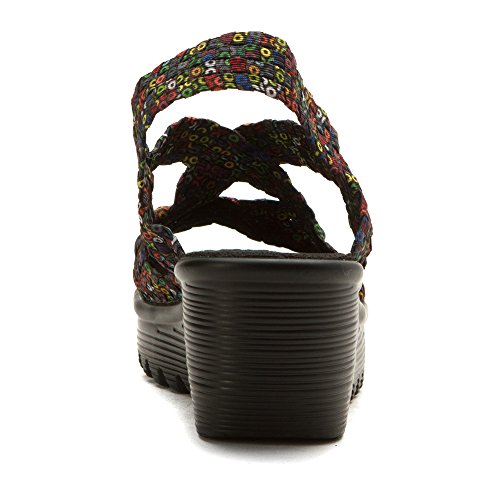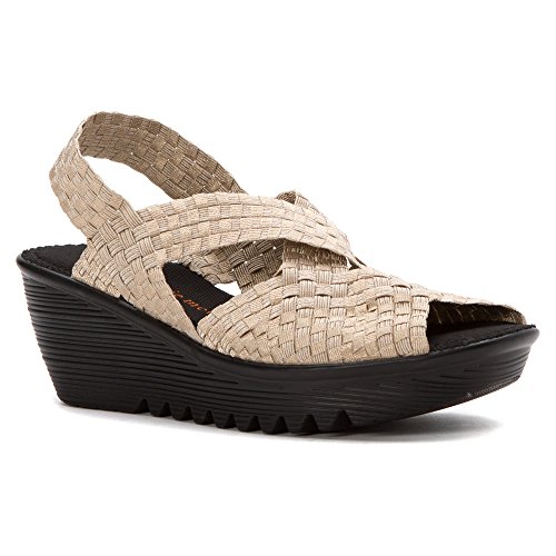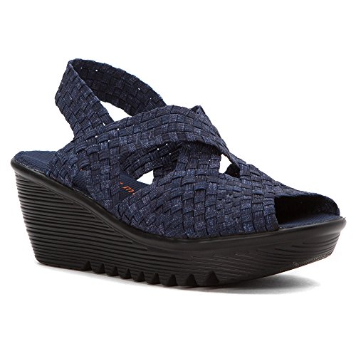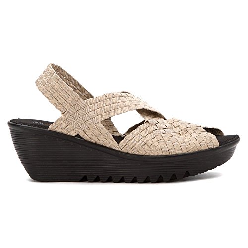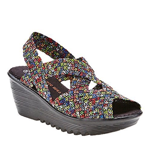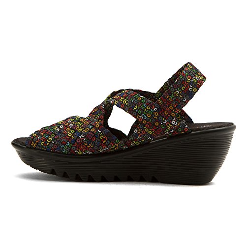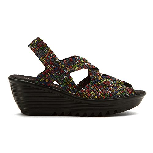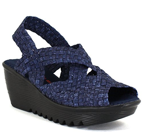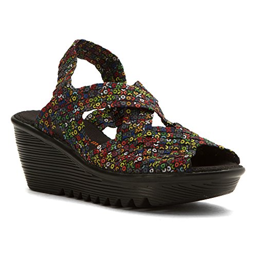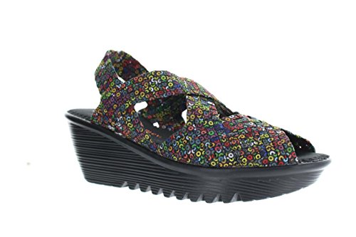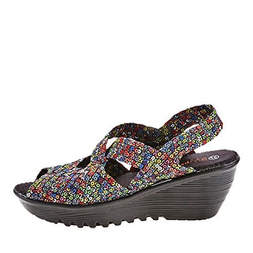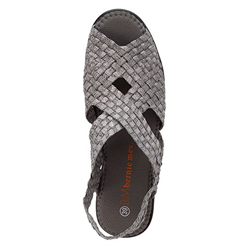 Product DescriptionBrighten every day with these super cute and comfortable Bernie Mevs Elasticized fabric upper Antibacterial fabric lining Comfort padded footbed Apporx 2 1/2 inch wedge heel Sling back strap0