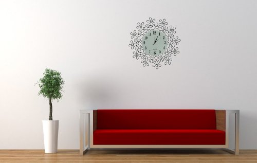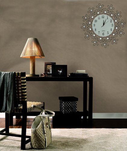 - Feature : Decorative Metal Wall clock diameter 23.50" with black metal flowers & beautiful crystal accents. Please beware of cheap plastic reproductions. / Aprox weight 4 lbs. The black metal frame highlights any wall and the 11" glass dial is easy to view from a distance. / Silent Non-ticking, high quality quartz battery operated movement. Requires one AA battery (not included). / Decorative metal wall clock with Number dial, designed inspired by Daisy Flowers. / Perfect for Housewarming gift, holiday gift etc.