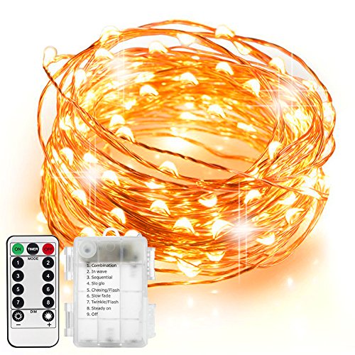 33 ft 100 LED String Lights,Waterproof Decorative Lights with Remote Control for Bedroom, Patio, Parties ( Copper Wire Lights, Warm White )