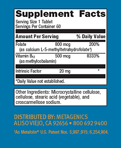 Intrinsi B12-Folate features vitamin B12 and folate in combination with intrinsic factor for enhanced absorption and assimilation.