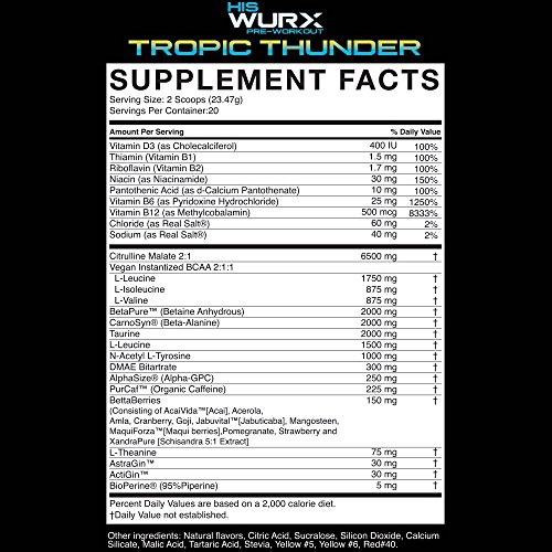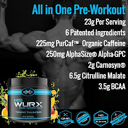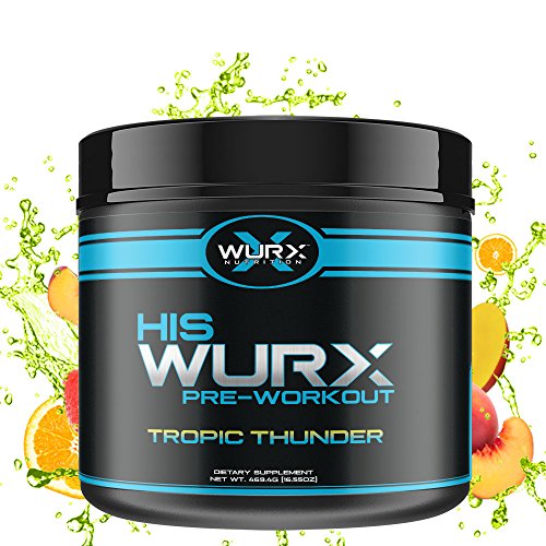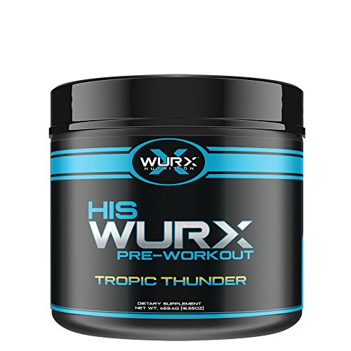 Wurx Nutrition His All in One Pre-Workout Men’s Powder Supplement for Power, Strength, Energy & Focus - 20 Servings, Tropic Thunder 16.55 oz