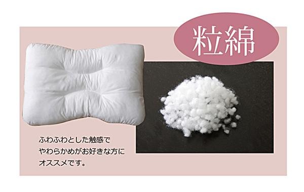 | ヌード部分の生地に抗菌消臭加工を施した枕です。中材は粒綿で、ふわふわとした触感なのでやわらかめの枕が好きな方におすすめです。 |