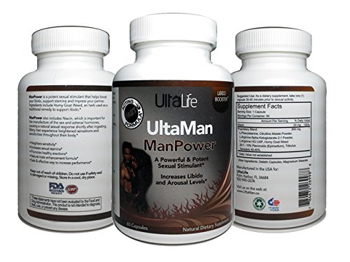 - Title : #1 BEST LIBIDO BOOSTER By UltaLife ✚ ManPower is a Potent Male Enhancement Pill that Increases Libido Leaving You Aroused In Ways That Will Impress You and Your Partner ✚ Includes NIACIN Which Causes a Quick Response--and the Perfect Proprietary Blend of L ARGININE, HORNY GOAT WEED, TRIBULUS Terrestris and Pheylalanine for the Stamina and Endurance of a Teenager ✚ Heightens Sensations And Promotes Healthy Erections ✚ Safe & Effective Way to Increase Performance and Overall Sexual Health ✚ SATISFACTION GUARANTEED ✚ Buy TWO, get FREE Shipping.
