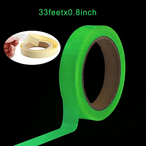 Luminous Tape Sticker, 33 ft x 0.8 inch Oumers Green High Bright Glow in the Dark Tape Removeble Waterproof and Photoluminescent
