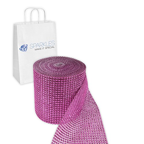 Sparkles Make It Special 24 Row Diamond Rhinestone Mesh Ribbon Trim Wrap - 4.5" x 10 Yard Roll - Wedding Cake Banding, Birthdays, Event Decorations, Party Supplies, Arts & Crafts - Hot Pink