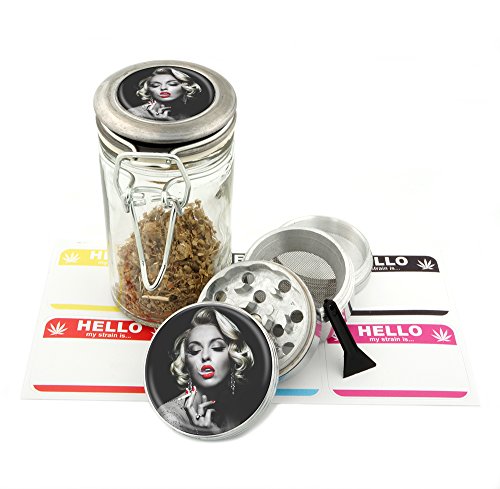 Marilyn Monroe - 42 mm- 4Pcs Small Size Grinder and 75 ml Locking Top Glass Jar Combo Gift Set # GJ42MM-020117-13