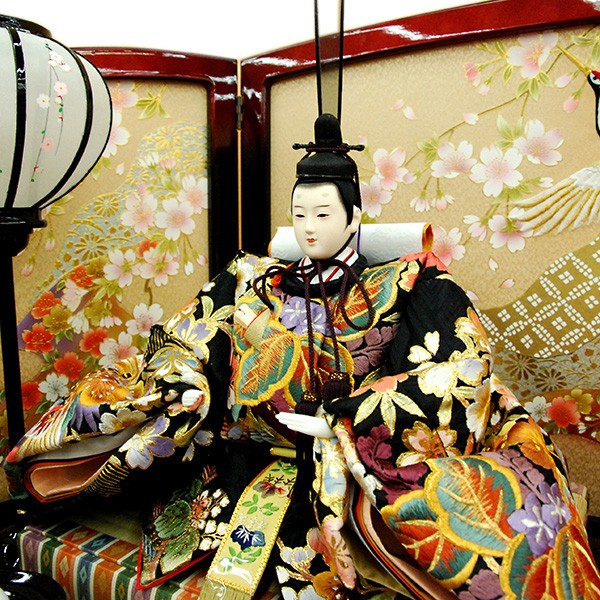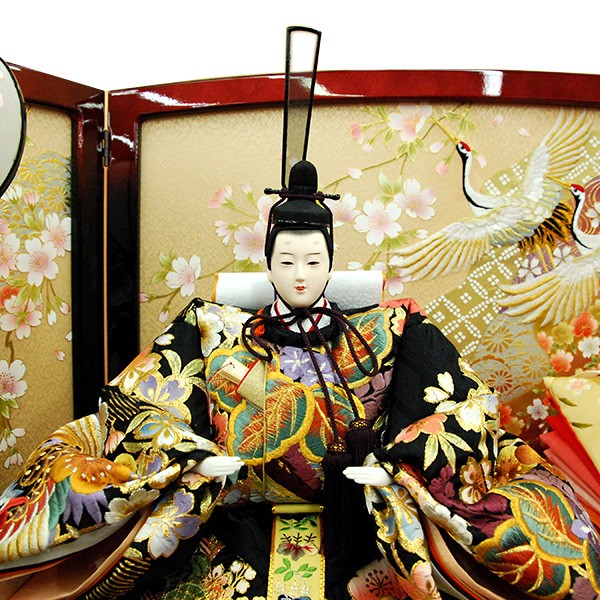 ・台座・屏風等には落ち着いた色目の雛人形セット。