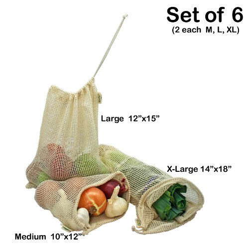 Simple Ecology Organic Cotton Mesh Produce Bag - Set of 6 (2 ea. M, L, XL)