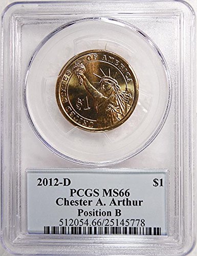 - 2012 D Pos. B Chester Arthur Presidential Dollar PCGS MS 66 Presidential Label Holder