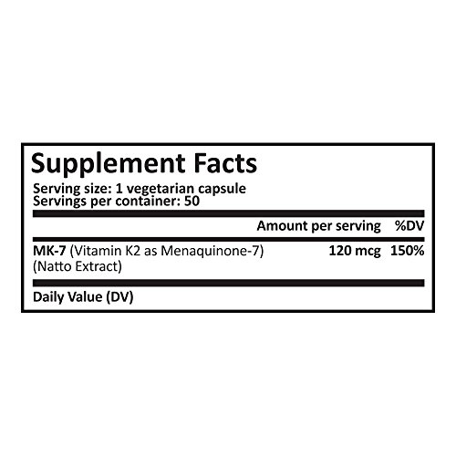 -. Binding : Health and Beauty -. Brand : Pure Science Supplements -. EAN : 0653341237101 -. Feature : HIGHEST DOSAGE OF VITAMIN K2 PER CAPSULE ON AMAZON: Pure Science boasts of the highest dosage of Vitamin K2 at 120 mcg per capsule on Amazon for potency and efficacy. We know how other manufacturers are offering at 100 mcg and we want to deliver more Vitamin K2 per capsule. / BOOSTS BONE MINERAL DENSITY: Naturally sourced from Natto extract, a Japanese fermented food high in Mk 7 Vitamin K2, Pure Science Vitamin K2 120mcg capsule is a safe and natural supplement. Vitamin K is crucial for healthy bones, heart, arteries, and effective memory function. Pure Science Vitamin K2 capsules help boost bone density by inhibiting the osteoclasts from breaking down bone tissues. / STRENGTHENS BONES & REDUCES VULNERABILITY TO FRACTURES: It unlocks the passage from the bloodstream to let calcium flow inside the bone, making it stronger and healthier. Its major biological role is to help move calcium into the proper areas in your body, such as your bones and teeth. Menaquinone-7 or vitamin K also inhibit osteoclasts from breaking down bone tissues and stimulate the production of osteocalcin so bones become stronger and less prone to fractures. / GOOD MANUFACTURING PRACTICES CERTIFIED: Produced by GMP certified facilities with the highest manufacturing and sourcing standards of Pure Science. 'Rooted in Science, Backed by Research' as its motto, Pure Science Supplements focuses on producing the best and safest products for our customers to achieve greater vitality in mind and body by using only the best raw materials obtained through rigorous research. / MONEY-BACK GUARANTEE: As we are confident of the efficacy of Vitamin K2 Supplement, all purchases are backed by a 100% money-back guarantee should you be unsatisfied. Our products are potent for 2 years from manufacture date. -. IsAdultProduct : 0 -. Label : Pure Science Supplements -. Manufacturer : Pure Science Supplements -. MPN : MK-7 -. PackageQuantity : 1 -. PartNumber : MK-7 -. ProductGroup : Health and Beauty -. ProductTypeName : HEALTH_PERSONAL_CARE -. Publisher : Pure Science Supplements -. Studio : Pure Science Supplements -. Title : Pure Science Vitamin K2 120mcg (MK-7) - Increases Bone Mineral Density, Promotes Bone Health, Reduces Vulnerability To Fractures - Gluten Free - 50 Vegetarian Capsules -. UPC : 653341237101