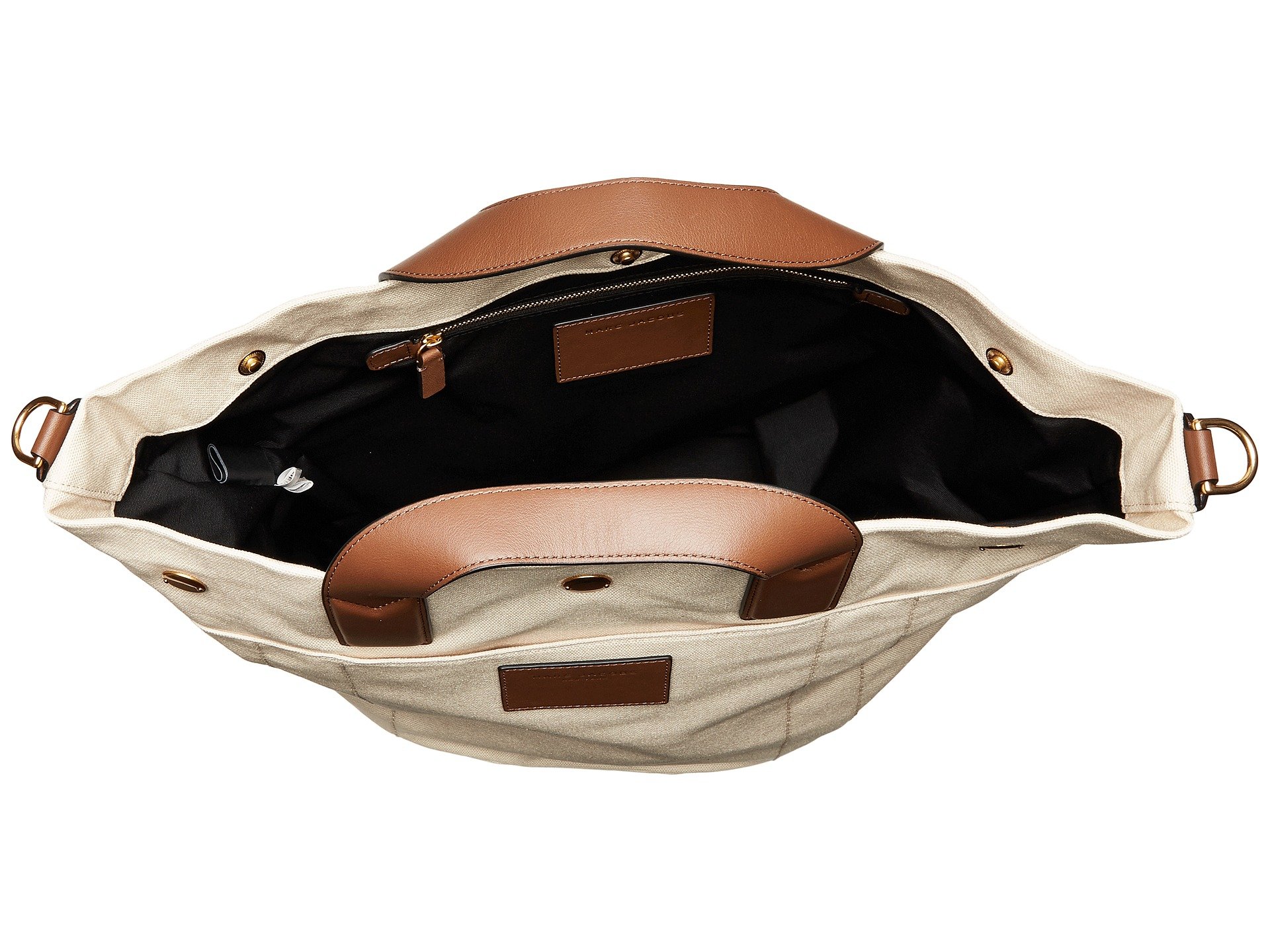 | Product Information SKU: #8719920Arrive on the scene prepared and stylish carrying the Marc Jacobs? Canvas Leather Trooper Small Paratrooper. Bag made of cotton. Top snap closures.Dual flat top handles. Removable and adjustable shoulder straps. Front exterior slip pocket. Rear exterior slip pocket. Brand name embossed at front. Flat base to provide upright structure. Cotton lined interior features back-all zip pocket and front-wall slip pocket. Imported. This item may ship with an attached security tag. Merchandise returned without the original security tag attached or a damaged tag may not qualify for a refund.This product may have a manufacturer's warranty. Please visit the manufacturer's website or contact us at warranty@support.zappos.com for full manufacturer warranty details.Measurements: Bottom Width: 10 in Depth: 8 1?4 in Height: 13 in Strap Length: 45 in Strap Drop: 20 in Handle Length: 9 in Handle Drop: 3 in Weight: 1 lb 9 oz |