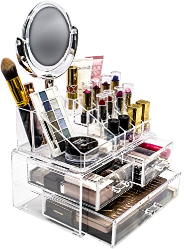 Sorbus Acrylic Cosmetic Makeup and Jewelry Storage Case Display with Removable Magnifying Mirror - Spacious Design - Great for Bathroom, Dresser, Vanity, and Countertop