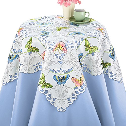 -. Feature : Features lacy openwork, scalloped edges & embroidered butterflies on a white background / Perfect alone or with a coordinating tablecloth underneath (sold separately) / Made from machine washable polyester / Runner measures 68"L x 13"W, Square is 34"Sq / Shop with confidence! For over 50 years, Collections Etc has been bringing unique, whimsical, inspirational, and home solution products to customers. All Collections Etc products come with a 60 day, easy return policy and 100% satisfaction guarantee