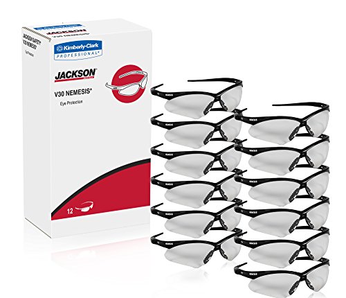 Jackson Safety V30 Nemesis Safety Glasses (25676), Clear with Black Frame, 12 Pairs / Case
