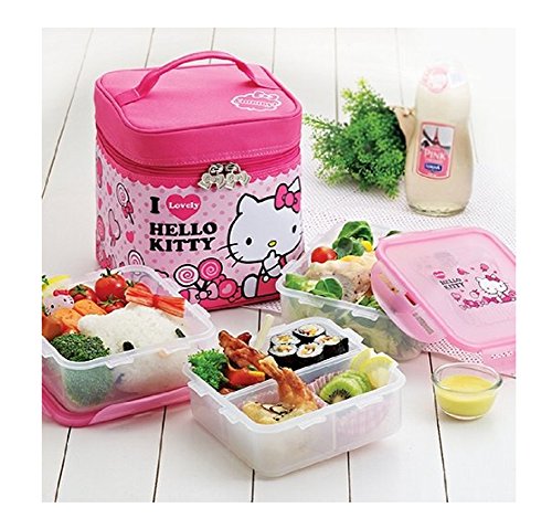 Lock & Lock Hello Kitty Baby Children Check Bag Lunch Box Set 3-tier 870ml 3pcs (Lkt741)