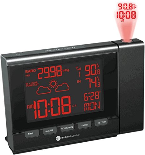 The colorful RC-8401 wireless weather station featuring Ambient backlighting and projection time and temperature is easy to read from any distance. The backlight color changes with the temperature.