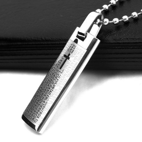 -. Title : Spanish Lord's Prayer and Cross Stainless Steel Pendant Necklace