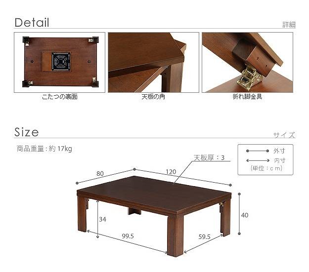 ※メーカー直送のため代金引換はお受けできません。※沖縄・一部離島は別途送料がかかります。お見積もりいたしますのでお問い合わせ下さい。商品について:スクエアな形。シンプルなデザイン♪片側を片手でひょい♪っと持ち上げられる軽量タイプのこたつです★使わないときは片付けられる便利な折れ脚式です★600W石英管ヒーター(手元コントローラー式)サイズ(cm):幅120x奥行80x高さ40・約17kgカラー:ブラウン材質:天板-天然木化粧合板(楢)脚部組立品(41200258)