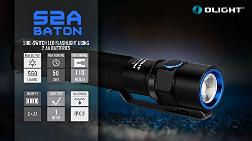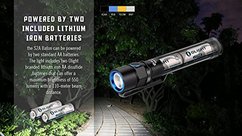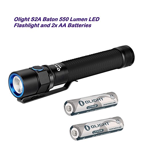 Bundle: Olight S2A Baton 550 Lumen CREE XM-L2 LED Flashlight Wrapped in Soft Silicon, Side-Switch, Variable Output and LegionArms 2 x AA Lithium Iron (1.5V, Non-Rechargeable) Battery