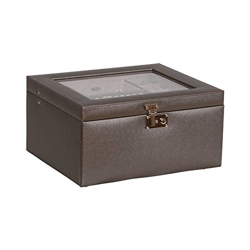Mele & Co Linden Glass Top Fashion Jewelry Box in Textured Faux Leather, Pewter