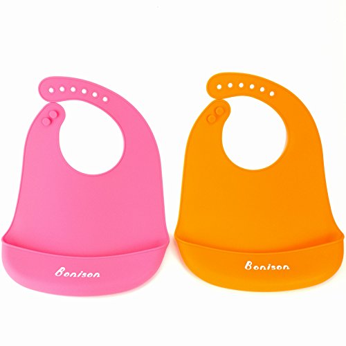 -. Title : Bonison Top Quality Soft Silicone Bib Waterproof Baby Bib 2 Pack (0-5 Year) (Blue, Green, Pink, & Orange Variety Sets)