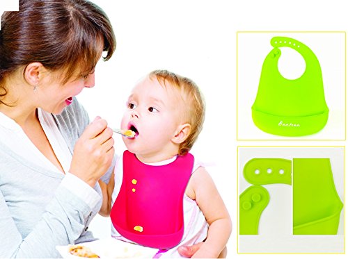 -. Feature : Absolutely Adorable - Adorable colors and style for your adorable little one. A variety of colors to choose from. Regardless of boy or girl, you will find the perfect color. This is one item many will not duplicate at the baby shower. / Adjustable - The neck size is adjustable to allow for babies and toddlers to use. Perfect for when they start sitting up and ready to be fed from the spoon. The handy front pouch catches most of the mess depending on what's being fed. / Comfortable - Soft silicone makes it non irritating to wear. Free of toxins and BPA! Safe to be worn and chewed by toddler. Although, not advisable to use as a teether, we wouldn't want any accidental pieces to be torn and possible swallowing. / Eco-friendly - Save energy on constant machine washing - Save money and the landfill from disposable bibs. Easily wipes clean with a soapy hand towel. A wipe can be used for those small clean-ups. / Get 2 in a pack - Rather you have multiples or one, you can always use a spare bib. Keep stored in your bag for use when away. The flexible silicone can be rolled to fit in your bag. Keep in a storage bag while away until home to clean for those fun family outings.