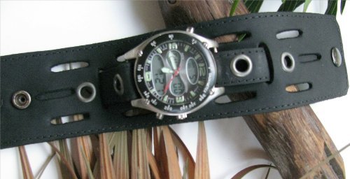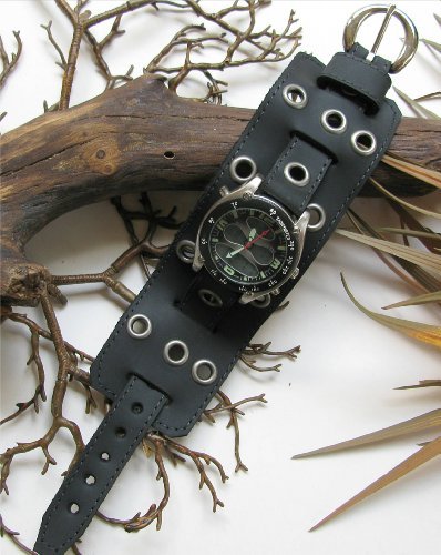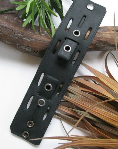-. Title : 2" WIDE BLACK LEATHER WATCH BAND,WATCH STRAP WRIST BAND,WRISTCUFF