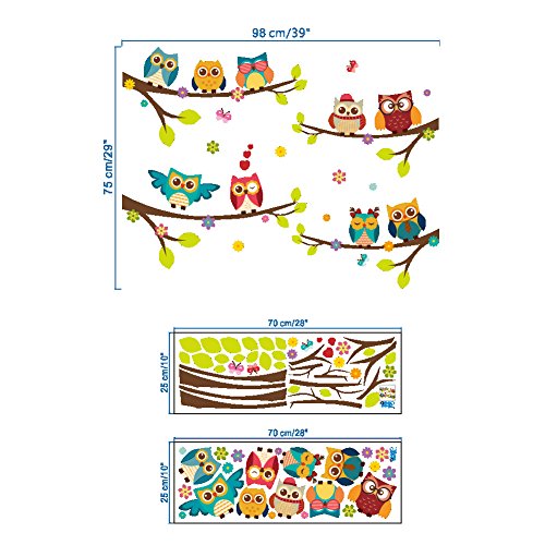 Amaonm Removable Cartoon 9 Family Owls On The Tree Branches Wall Decal Stickers Mural Peel and Stick Wall art Decor Home Decorations for Your Kids Babys Room Walls Bedroom Living Room
