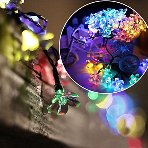Semintech Solar Powered String Lights Outdoor Waterproof 50LED Peach Blossom Xmas Decorations for Garden Patio Multi color