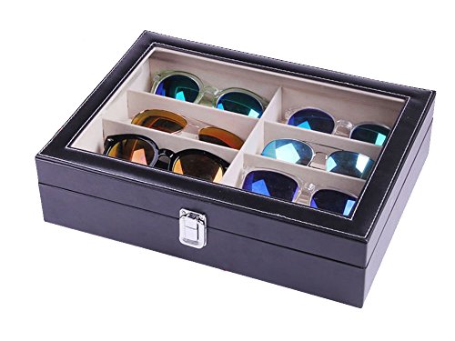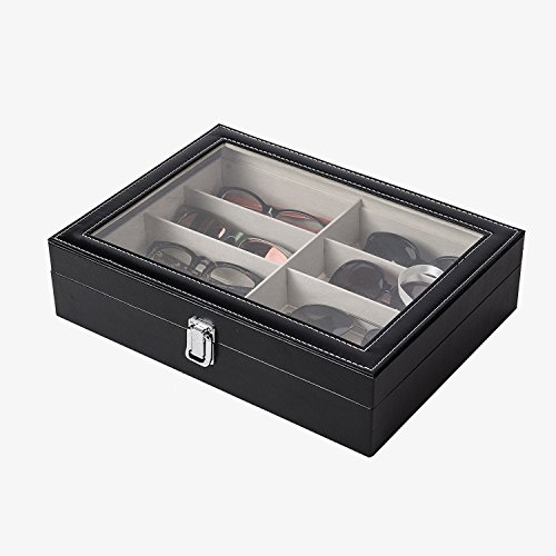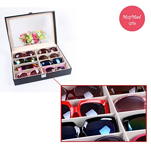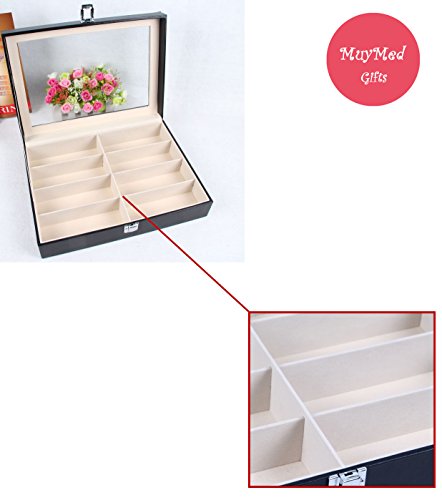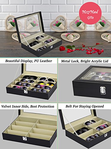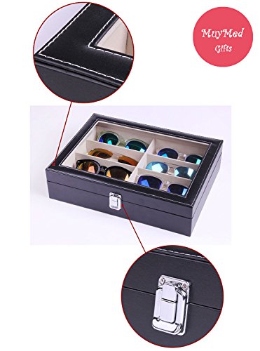 Eyewear Eyeglasses Sunglasses Organizer Storage Display Case | 8 Compartments | Combination of Leather, Velvet, Safe Acrylic Lid | Best Quality | Best Display | Best Protection | Black | MUYMED Gifts