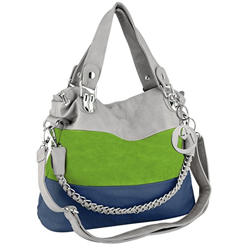 MG Collection MAWAR Green / Blue / Gray Chic Hobo Style Shoulder Handbag / Purse