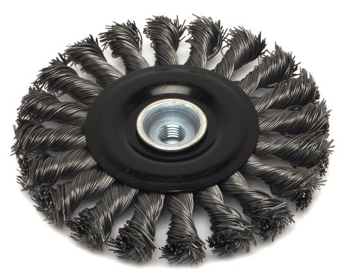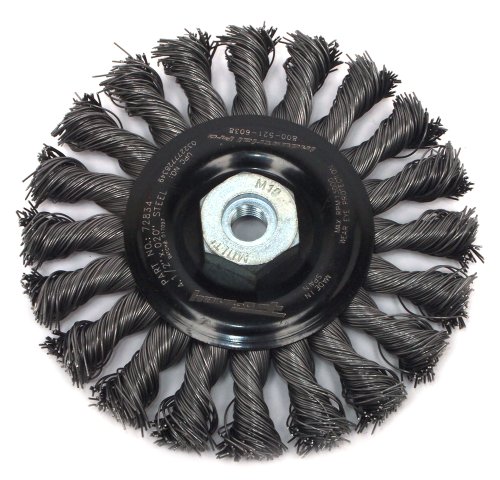 Forney 72834 Wire Wheel Brush, Industrial Pro Twist Knot with M10-by-1.50/1.25 Multi Arbor, 4-1/2-Inch-by-.020-Inch