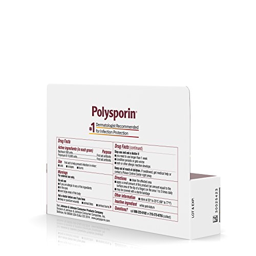 Prevent infection in minor cuts, scrapes, and burns with Polysporin First Aid Antibiotic Ointment. Combining the power of bacitracin with polymyxin B, this ointment provides you with first aid antibiotic power without neomycin. Polysporin First Aid Antibiotic Ointment is the dermatologist-recommended first aid ointment for treating infection. Simply apply a small amount of this product on the affected area one to three times a day and enjoy protection. The tube contains 1 ounce of ointment.Feature
