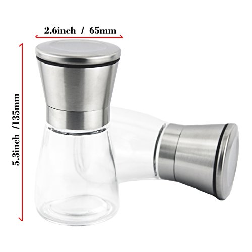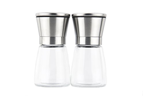 Premium Glass Salt & Pepper Grinder. Adjustable Pepper Mill Salt Shaker (2 Pcs).