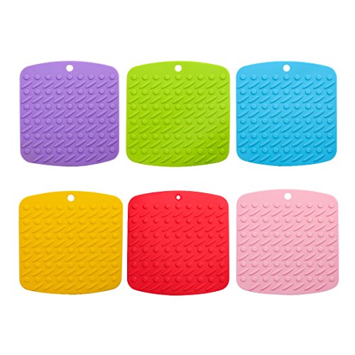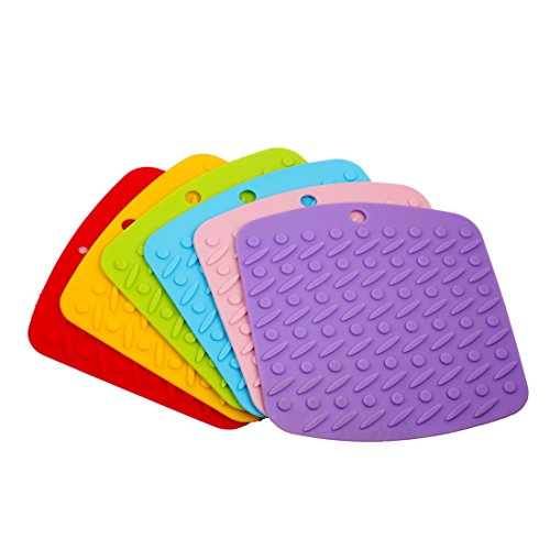 iMucci 7" Heat Resistant 482 °F Silicone Pot Holder, Trivet Mat, Hot Pads, Jar Opener, Spoon Rest and Garlic Peeler, Pack of 6