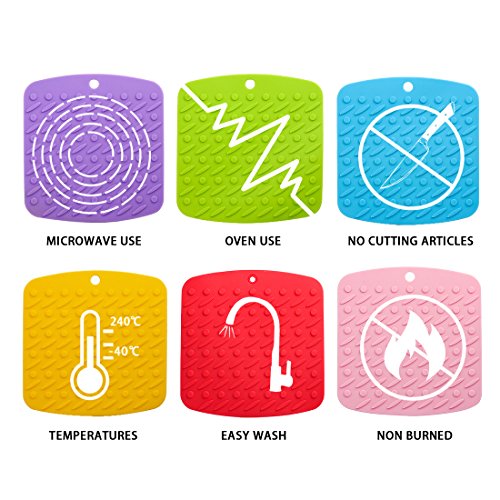 - 3: USAGE: Can be used as jar opener, spoon rest, trivet, garlic peeler, table mats or anywhere you need extra grip or extreme heat or cold protection. Non slip,flexible,durable;
