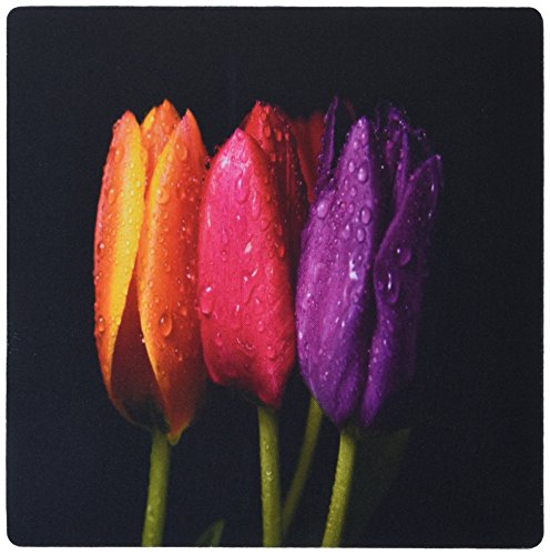 3dRose LLC 8 x 8 x 0.25 Inches Mouse Pad, Orange/Red/Purple Dew Covered Tulips (mp_55226_1)