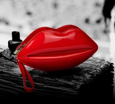 7 Weapons Lips Bags Evening Bags Clutch(red with Short Chain)