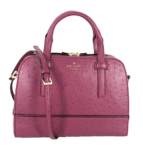 -. Brand : Kate Spade New York -. Color : Red Plum -. Department : womens -. EAN : 0098689977928 -. Feature : Convertible satchel in ostrich embossed cow leather. / Gold foil logo with floating spade. Back slip pocket. / Top handle, 4" drop & Removable adjustable crossbody strap, 21" drop. / Duel zip top closure. Lined with zip & slip pockets. / 9"h x 11.5"w x 4.5"d -. Model : WKRU3601 -. ProductGroup : Shoes -. ProductTypeName : HANDBAG -. Title : Kate Spade Riverside Street Ostrich Embossed Felix Satchel, Red Plum -. UPC : 098689977928